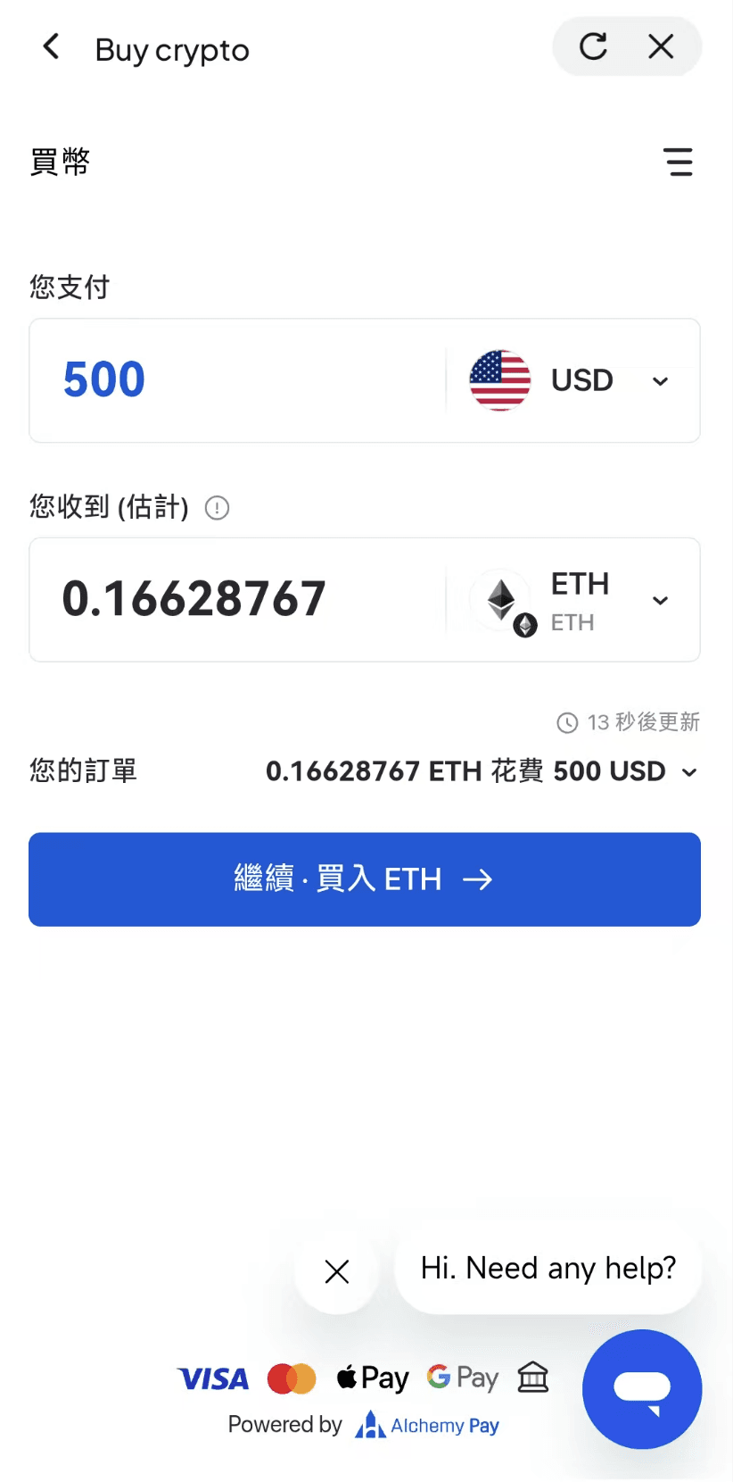 第三步:選擇付款方式後,單擊[買入ETH]